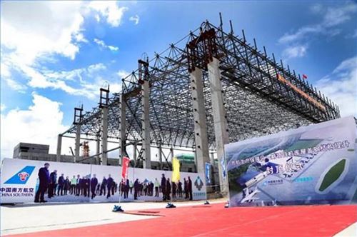貴航生產(chǎn)保障區(qū)一期項(xiàng)目1號(hào)機(jī)庫鋼結(jié)構(gòu)屋架成功“升頂”