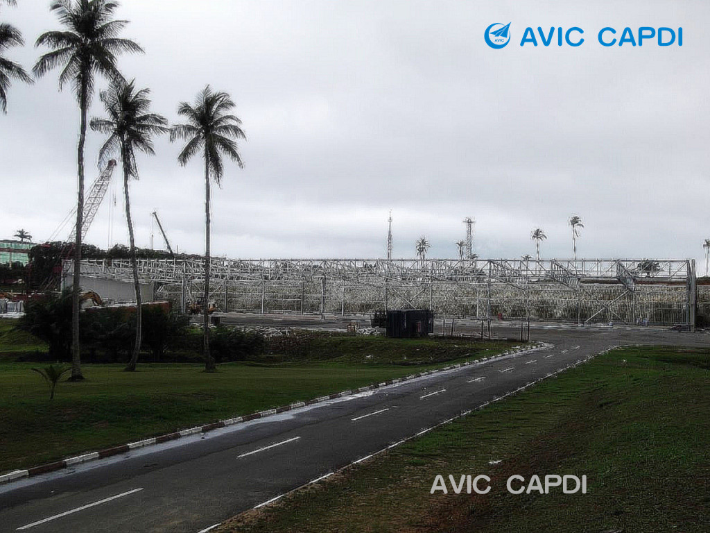 Покрытие ангара установлена система сборной плоской стальной фермы. Опорная