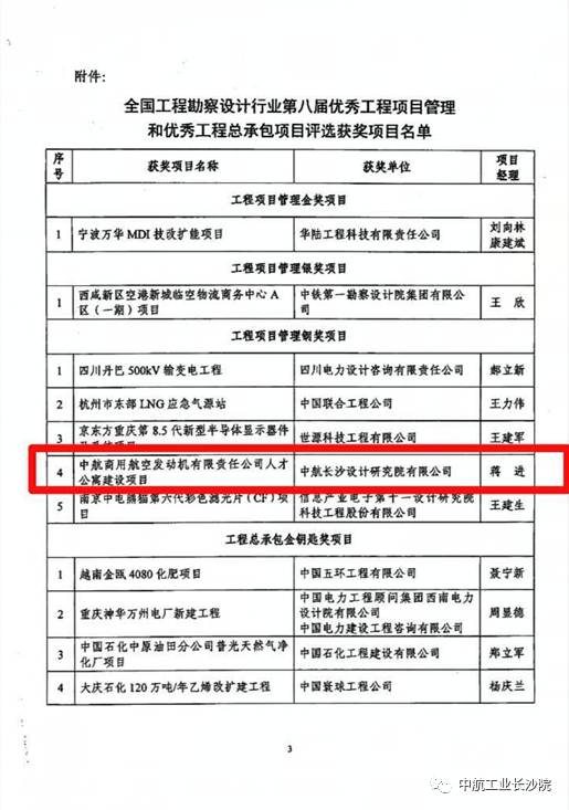 3月20日,從中國勘察設計協(xié)會傳來喜訊,長沙院中航商用航空發(fā)動機有限責任公司人才公寓建設項目獲得全國工程勘察設計行業(yè)第八屆工程項目管理銅獎項目。