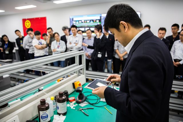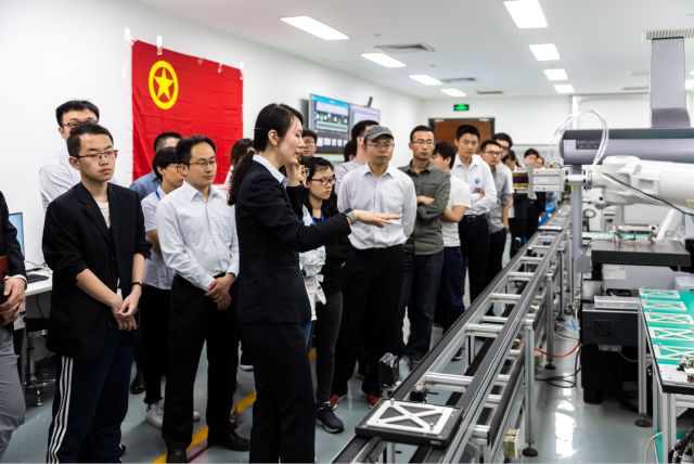 帶領(lǐng)公司青年員工參觀由技術(shù)院依托自主技術(shù)建設(shè)運(yùn)行的物理模型線、仿真實(shí)驗(yàn)中心、文物保護(hù)防震裝置和技術(shù)創(chuàng)新成果展板等,現(xiàn)場(chǎng)感受和體驗(yàn)智能制造新技術(shù)的應(yīng)用。
