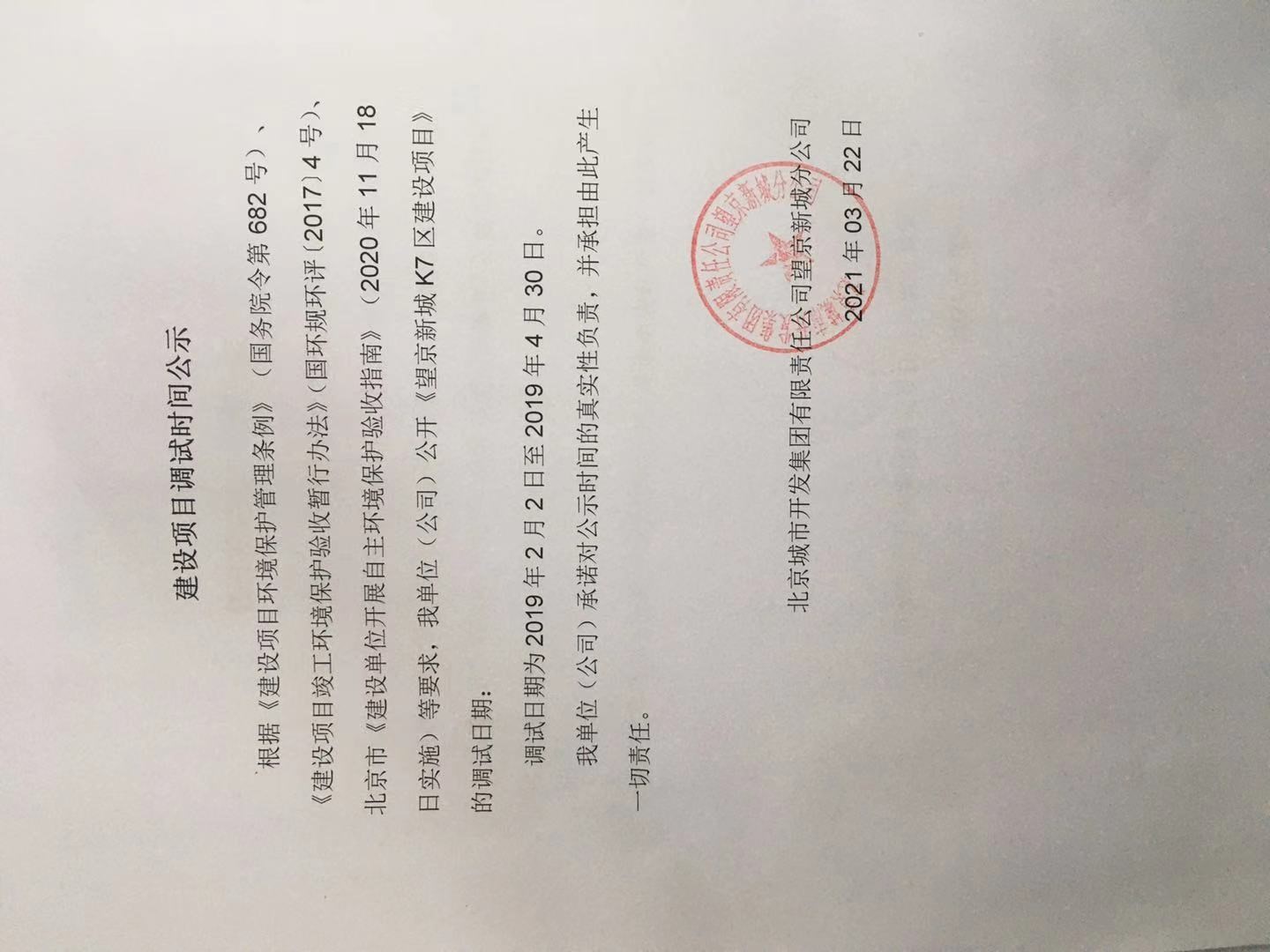 《望京新城K7區(qū)建設(shè)項(xiàng)目環(huán)境影響報(bào)告書》于2002年12月完成;2002年12月18日獲得《北京市環(huán)境保護(hù)局關(guān)于望京新城K7區(qū)建設(shè)項(xiàng)目環(huán)境影響報(bào)告書的批復(fù)》(京環(huán)保監(jiān)督審字[2002]456號)。