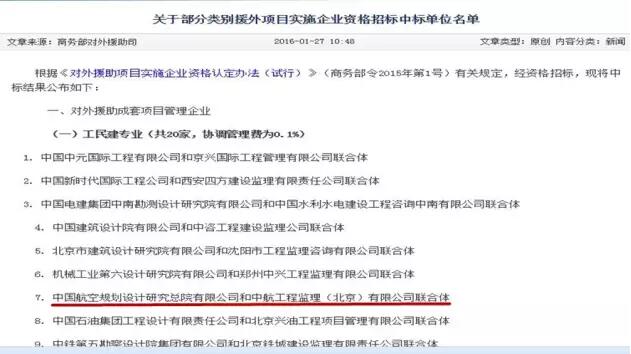 中航規(guī)劃通過商務(wù)部對外援助成套項目管理企業(yè)資格