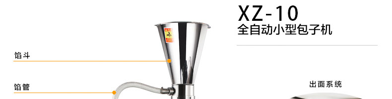 XZ-10型全自動包子機,可生產不同餡料的包子及南瓜餅、圓饅頭等各種包餡制品??缮a肉包、菜包、小籠包、豆沙包、奶黃包、云南破酥包等多種包餡類產品。適用于賓館、飯店、學校、機關企業食堂、饅頭或包子加工廠、早餐工程店及速凍食品廠等單位。可滿足不同客戶群體。免費提供工藝技術。