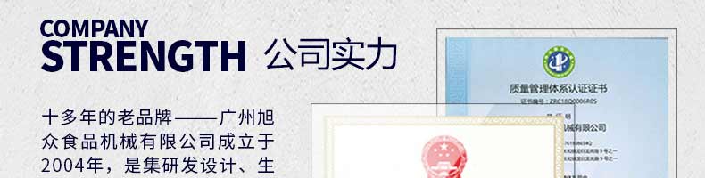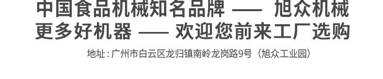 廣州旭眾食品機械有限公司是一家集科研開發,生產設計,營銷服務為一體的現代化生產企業。現代化生產車間,精湛制造技術,所產機械歷經市場重重考驗,不斷贏得海內外客戶的贊譽。