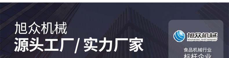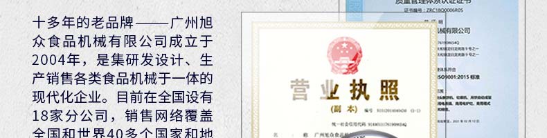 廣州旭眾食品機(jī)械有限公司是一家集科研開發(fā),生產(chǎn)設(shè)計(jì),營銷服務(wù)為一體的現(xiàn)代化生產(chǎn)企業(yè)。現(xiàn)代化生產(chǎn)車間,精湛制造技術(shù),所產(chǎn)機(jī)械歷經(jīng)市場重重考驗(yàn),不斷贏得海內(nèi)外客戶的贊譽(yù)。