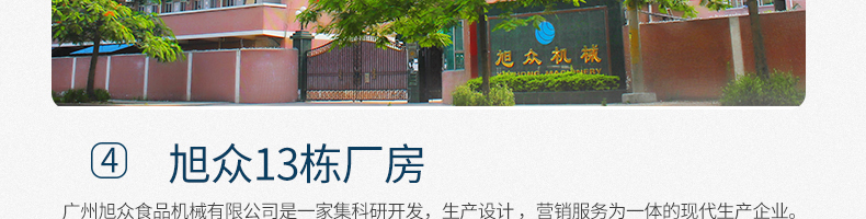 廣州旭眾食品機械有限公司是一家集科研開發(fā),生產(chǎn)設計,營銷服務為一體的現(xiàn)代化生產(chǎn)企業(yè)。現(xiàn)代化生產(chǎn)車間,精湛制造技術,所產(chǎn)機械歷經(jīng)市場重重考驗,不斷贏得海內(nèi)外客戶的贊譽。