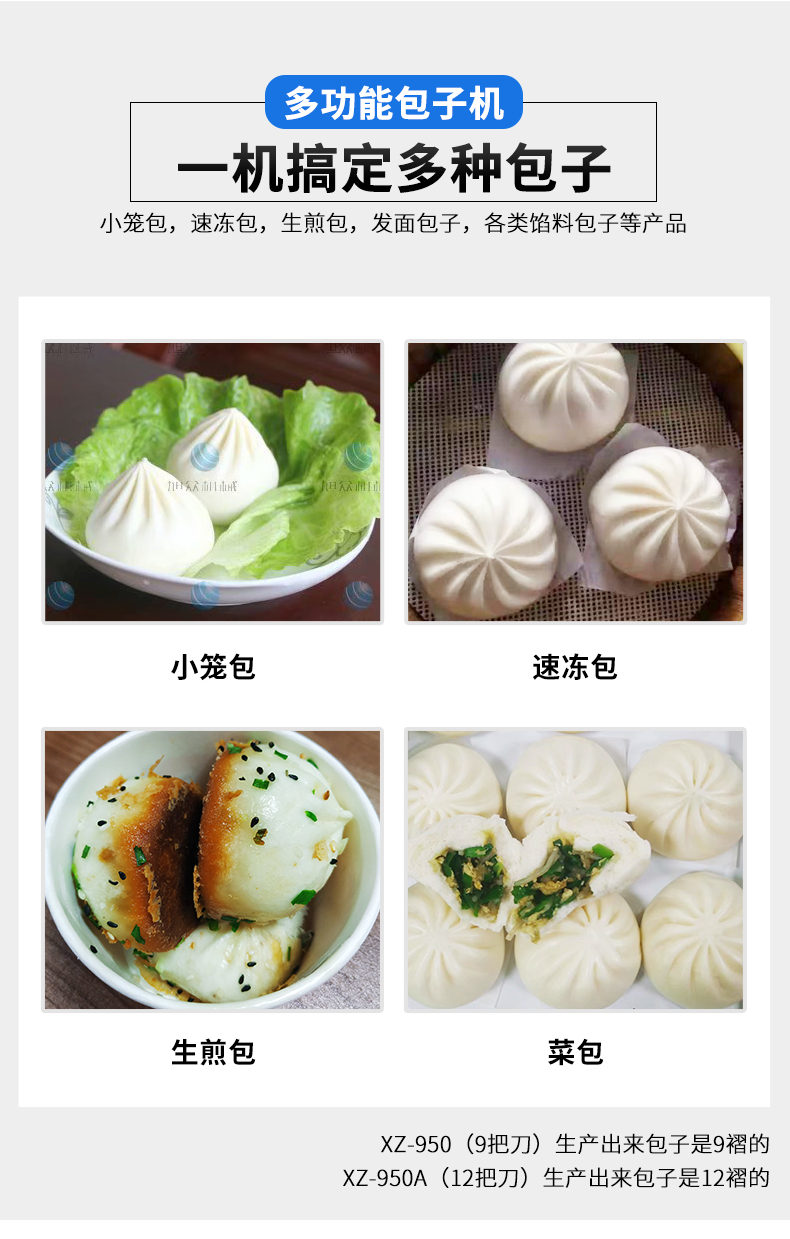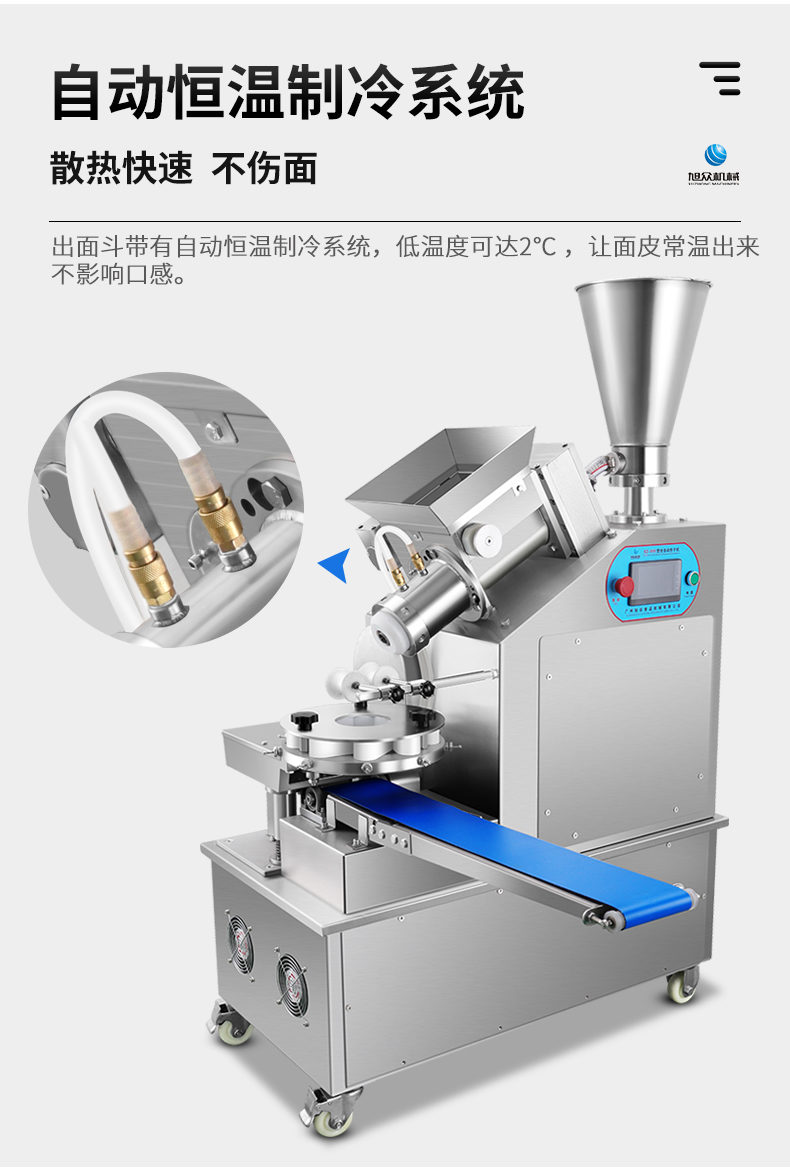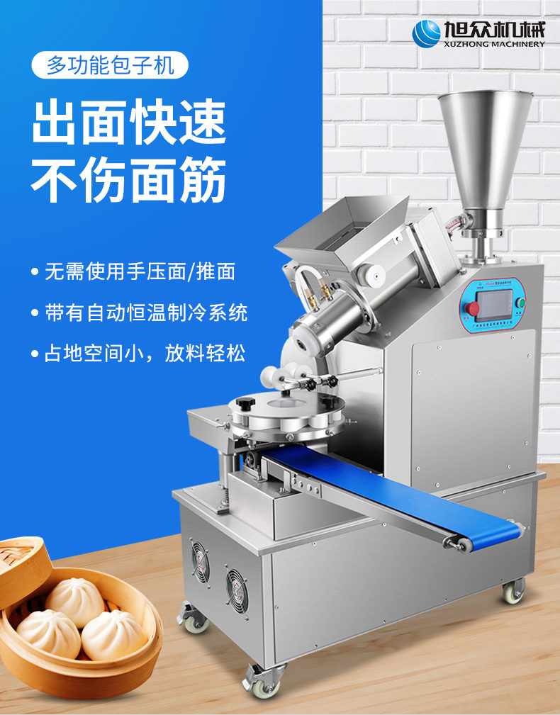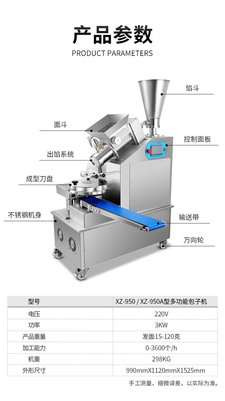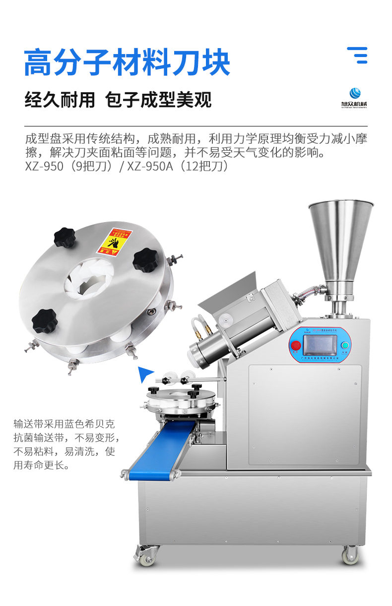 XZ-950型多功能包子機,多功能包子機,出面快速、不傷面筋。無需使用手壓面/推面,帶有自動恒溫制冷系統,占地空間小,放料輕松。