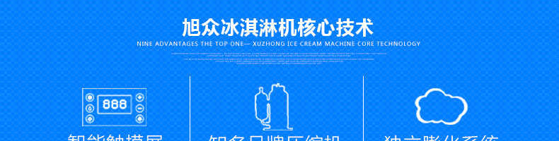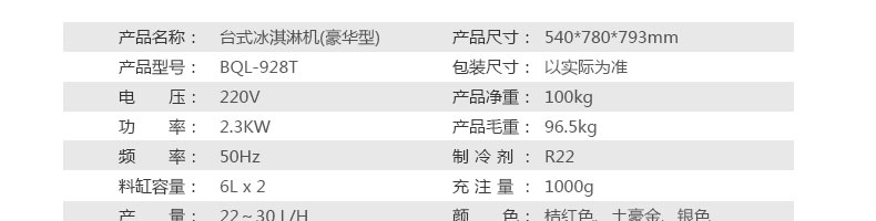 BQL-928T臺式冰淇淋機,1.選用國際牌壓縮機,輔以旭眾精湛工藝,大大縮短冰淇淋成型時間,高效節能;2.全新液晶智能觸控面板,簡單明了,多功能易操作;3.全新升級專業膨化泵,膨化率高,產量增加30%;4.一鍵清洗功能,省時方便;5.主要部件采用不銹鋼材質,時尚美觀,持久耐用;6.先進的機械攪拌系統,機器運行穩定可靠,低噪音,產品口感爽滑細嫩。