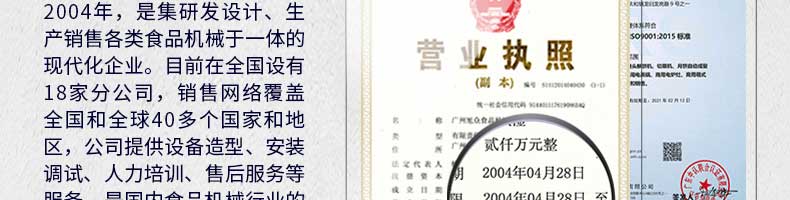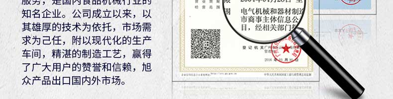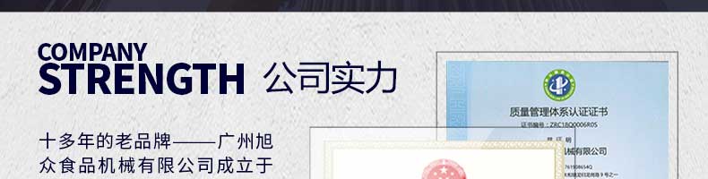 廣州旭眾食品機械有限公司是一家集科研開發,生產設計,營銷服務為一體的現代化生產企業。現代化生產車間,精湛制造技術,所產機械歷經市場重重考驗,不斷贏得海內外客戶的贊譽。