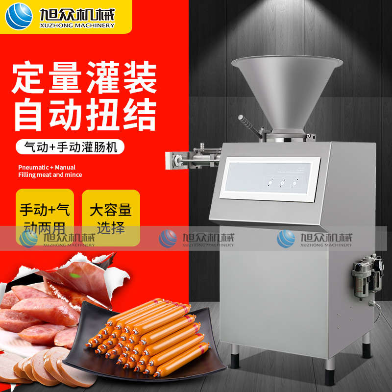 XZ-III定量灌裝自動扭結機,氣動灌腸機,定量灌裝、自動扭結。是時候告別,手動灌腸了。這樣灌腸即浪費您的世間,又辛苦又累、您愿意接受這樣的生活嗎?