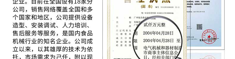 廣州旭眾食品機械有限公司是一家集科研開發,生產設計,營銷服務為一體的現代化生產企業。現代化生產車間,精湛制造技術,所產機械歷經市場重重考驗,不斷贏得海內外客戶的贊譽。