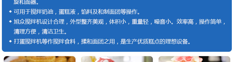 SZM10、15、20、25、30攪拌機系列,可用于攪拌奶油、蛋糕液、餡料及和制面團(tuán)等操作。打蛋攪拌機等作攪拌食料、揉和面團(tuán)之用,是生產(chǎn)優(yōu)質(zhì)糕點的理想設(shè)備,適用于酒店、飯店、學(xué)校部門、面包屋以及食品廠家。