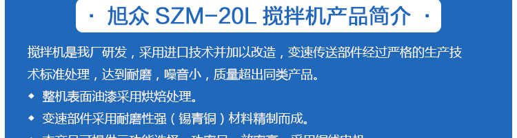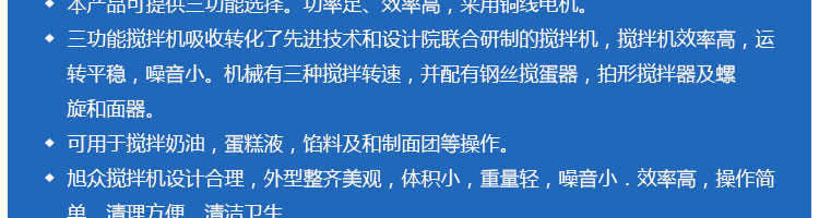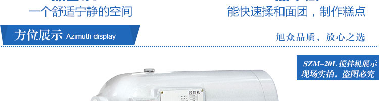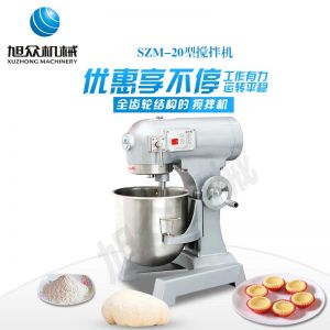 SZM-20型四功能攪拌機(jī),可用于攪拌奶油、蛋糕液、餡料及和制面團(tuán)等操作。打蛋攪拌機(jī)等作攪拌食料、揉和面團(tuán)之用,是生產(chǎn)優(yōu)質(zhì)糕點的理想設(shè)備,適用于酒店、飯店、學(xué)校部門、面包屋以及食品廠家。