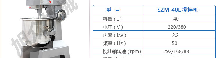 SZM-40、50、60攪拌機系列,可用于攪拌奶油、蛋糕液、餡料及和制面團等操作。打蛋攪拌機等作攪拌食料、揉和面團之用,是生產優質糕點的理想設備,適用于酒店、飯店、學校部門、面包屋以及食品廠家。