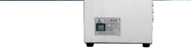 SZ-22 電動絞肉機,電動絞肉機的校孔直徑為6、8mm,本機優(yōu)點具有電耐用、方便快捷、結構緊湊、外形美觀、操作方便、效率高、耗電少、清潔保養(yǎng)容易、安全衛(wèi)生等優(yōu)點。采用全封閉齒輪傳動,結構緊湊,運轉平穩(wěn),工作可靠,且維修方便;絞肉機頭及接觸食品的零部件都采用不銹鋼制造,安全無污染;機殼線條流暢,沒有可污的縫隙及無傷害操作者的銳邊,易于清潔。
