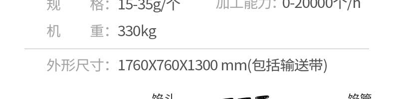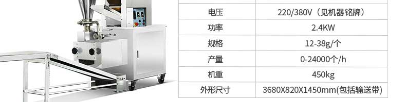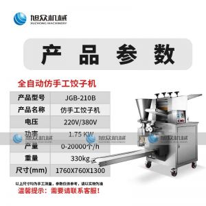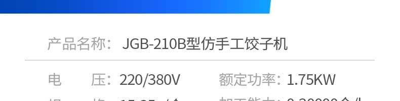 名稱JGB-210B仿手工餃子機(jī) 電源220/380v 功率1.75kw 產(chǎn)量0-20000個(gè)/h 尺寸1760*760*1300mm 重量330kg 規(guī)格15-35g/個(gè) 其他