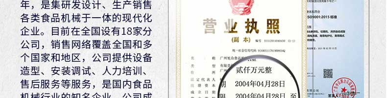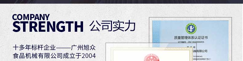 廣州旭眾食品機(jī)械有限公司是一家集科研開發(fā),生產(chǎn)設(shè)計(jì),營銷服務(wù)為一體的現(xiàn)代化生產(chǎn)企業(yè)。現(xiàn)代化生產(chǎn)車間,精湛制造技術(shù),所產(chǎn)機(jī)械歷經(jīng)市場重重考驗(yàn),不斷贏得海內(nèi)外客戶的贊譽(yù)。