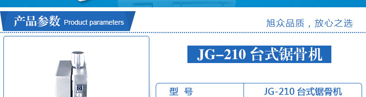 名稱JG-210臺(tái)式鋸骨機(jī) 電源220V 功率0.75kw 產(chǎn)量 尺寸535*520*985mm 重量43kg 規(guī)格 其他