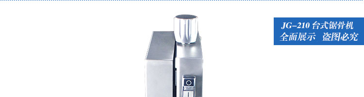 JG-210臺(tái)式鋸骨機(jī),適用于各類骨頭,冷凍肉,帶魚骨,冰塊,冷凍魚的分割。采用全不銹鋼材料制作,具有工作效率高,操作安全的特點(diǎn)。廣泛適用于食品加工廠,屠宰場(chǎng),肉類加工廠等