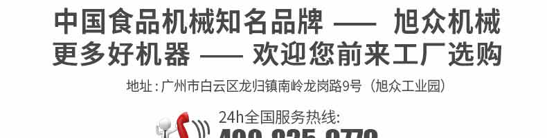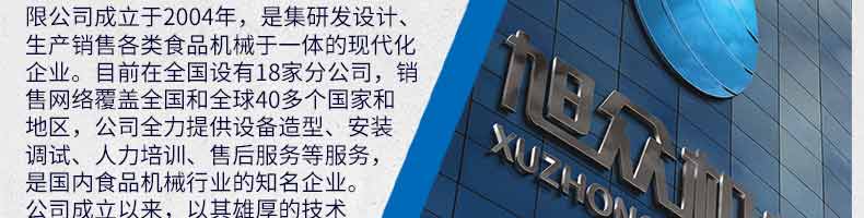 廣州旭眾食品機械有限公司是一家集科研開發,生產設計,營銷服務為一體的現代化生產企業。現代化生產車間,精湛制造技術,所產機械歷經市場重重考驗,不斷贏得海內外客戶的贊譽。