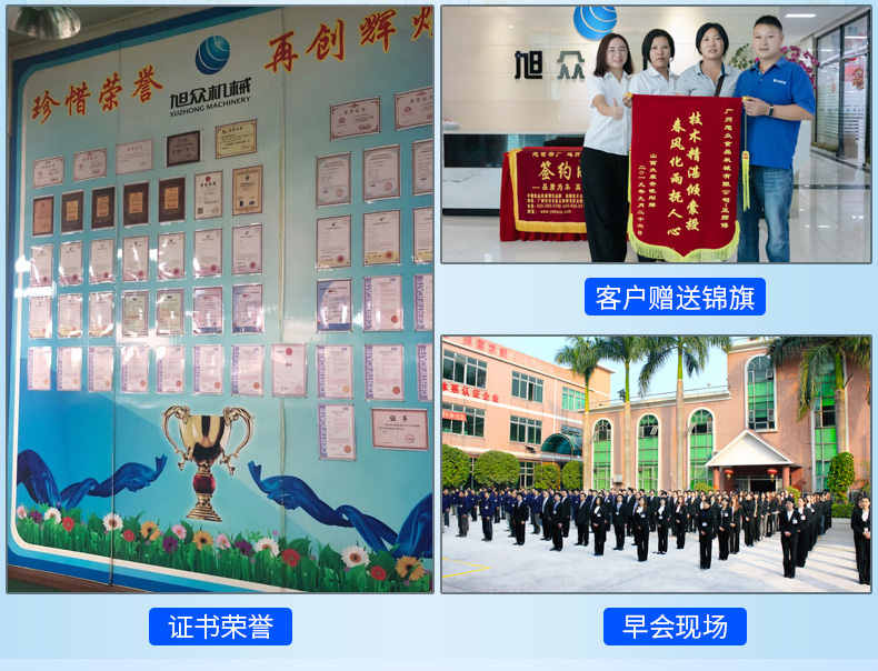 廣州旭眾食品機械有限公司是一家集科研開發(fā),生產設計,營銷服務為一體的現代化生產企業(yè)。現代化生產車間,精湛制造技術,所產機械歷經市場重重考驗,不斷贏得海內外客戶的贊譽。