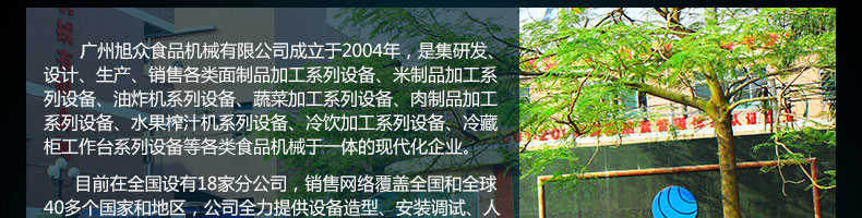 廣州旭眾食品機械有限公司是一家集科研開發,生產設計,營銷服務為一體的現代化生產企業。現代化生產車間,精湛制造技術,所產機械歷經市場重重考驗,不斷贏得海內外客戶的贊譽。