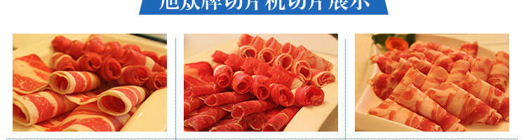 SA-350H 全自動(dòng)落地式切片機(jī),適合切無(wú)骨肉類和其他類似榨菜帶有彈性的食物,把原材料肉切成肉片,并可自動(dòng)成卷狀。可切牛肉片、羊肉片等
