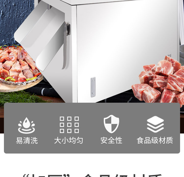 XZW-300魚禽類剁塊機,色禽類剁塊機適合切凍肉帶骨/不帶骨。“加厚”食品級材質安全衛生質量保證。傳送帶推進物料提高效率節省力氣。