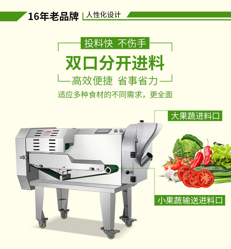 XZ-690A型多功能切菜機(jī),工作效率高,幫你省人工費(fèi)。1小時(shí)可切600kg-1600kg/h,1臺(tái)機(jī)器等于多名廚師同時(shí)為您工作。一機(jī)多用,可切瓜果、蔬菜、藥材,刀片可進(jìn)行更換,設(shè)計(jì)周到,結(jié)構(gòu)合理,簡單輕松應(yīng)對(duì)。