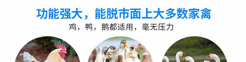鵝鴨型脫毛機,本機用于雞、鴨、鵝宰殺后的自動脫毛,還可用于脫姜皮、脫馬鈴薯皮、脫魚鱗等農產品。本機操作簡單,省力、省時間、工作效率相當于十多個人的手工勞動。