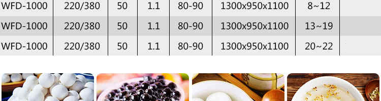 VFD-1000無餡湯圓機,本機可生產無餡湯圓、珍珠湯圓、桂花湯圓、奶茶所用的珍珠、檳榔紅丸、工藝品等。規格有8-34mm,可根據客戶要求定制。適用于個體戶、食品廠、學校等單位食堂。可滿足不同客戶群體。免費提供工藝技術。