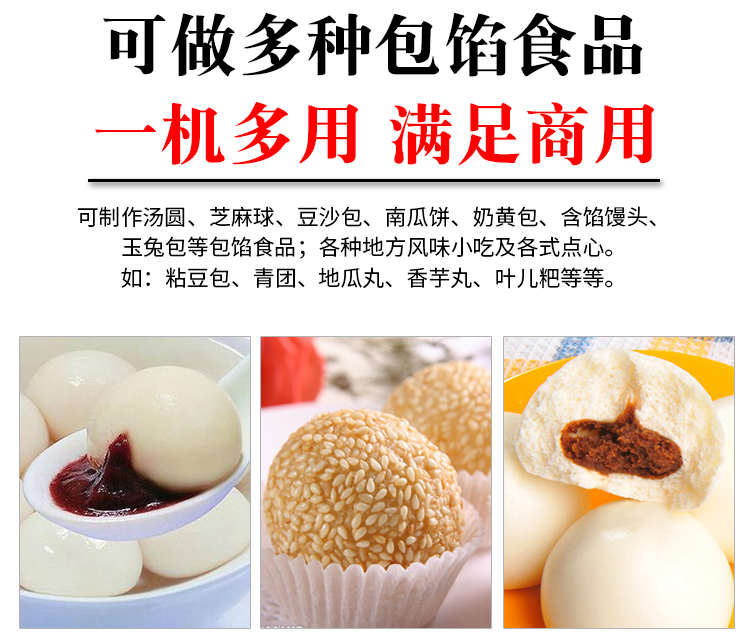 VFD-4000B湯圓機,定量準確自動搓圓排盤成型大小均勻口感柔滑。可制作各式包餡食品,如湯圓、芝麻球、豆沙包、南瓜餅、奶黃包等