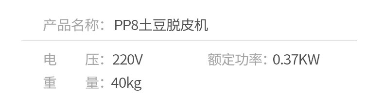 PP8、PP15薯仔脫皮機,土豆脫皮機,是采用離心旋轉,摩擦脫皮技術,工作效率高,主要用于土豆,芋頭表面脫皮。適用于肯德基店、酒店、食堂等。