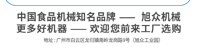 廣州旭眾食品機械有限公司是一家集科研開發,生產設計,營銷服務為一體的現代化生產企業。現代化生產車間,精湛制造技術,所產機械歷經市場重重考驗,不斷贏得海內外客戶的贊譽。