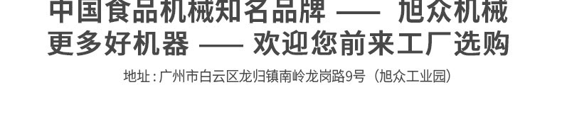 廣州旭眾食品機械有限公司是一家集科研開發,生產設計,營銷服務為一體的現代化生產企業。現代化生產車間,精湛制造技術,所產機械歷經市場重重考驗,不斷贏得海內外客戶的贊譽。