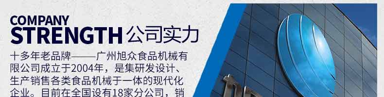 廣州旭眾食品機(jī)械有限公司是一家集科研開發(fā),生產(chǎn)設(shè)計(jì),營銷服務(wù)為一體的現(xiàn)代化生產(chǎn)企業(yè)。現(xiàn)代化生產(chǎn)車間,精湛制造技術(shù),所產(chǎn)機(jī)械歷經(jīng)市場重重考驗(yàn),不斷贏得海內(nèi)外客戶的贊譽(yù)。