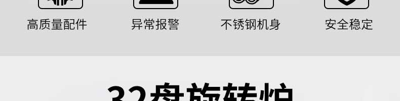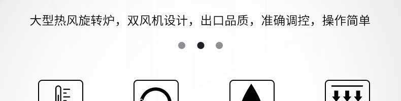 熱風旋轉爐系列,多項核心技術滿足您的需求大型熱風旋轉爐,雙風機設計,出口品質,準確調控,操作簡單。32盤旋轉爐大容量熱風旋轉爐,爐門釆用緊扣工藝,密封性更強,適合商用。