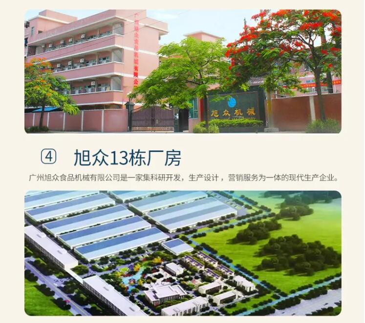 廣州旭眾食品機(jī)械有限公司是一家集科研開(kāi)發(fā),生產(chǎn)設(shè)計(jì),營(yíng)銷服務(wù)為一體的現(xiàn)代化生產(chǎn)企業(yè)。現(xiàn)代化生產(chǎn)車間,精湛制造技術(shù),所產(chǎn)機(jī)械歷經(jīng)市場(chǎng)重重考驗(yàn),不斷贏得海內(nèi)外客戶的贊譽(yù)。