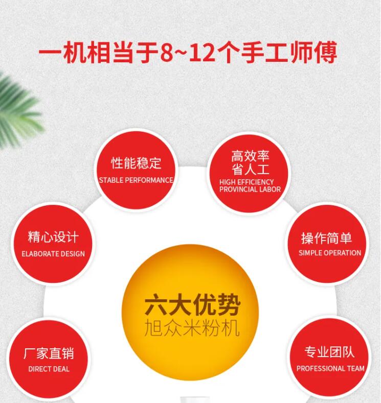 旭眾米粉機(jī),型號多,投資規(guī)模可大可小,除了適用于個體,還適用于鄉(xiāng)鎮(zhèn)加工廠及城市食品加工廠、民營企業(yè)等。