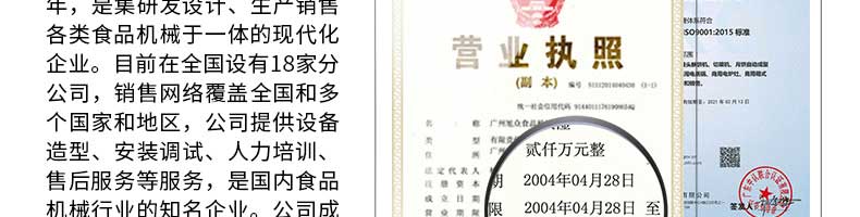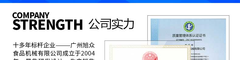 廣州旭眾食品機械有限公司是一家集科研開發,生產設計,營銷服務為一體的現代化生產企業。現代化生產車間,精湛制造技術,所產機械歷經市場重重考驗,不斷贏得海內外客戶的贊譽。